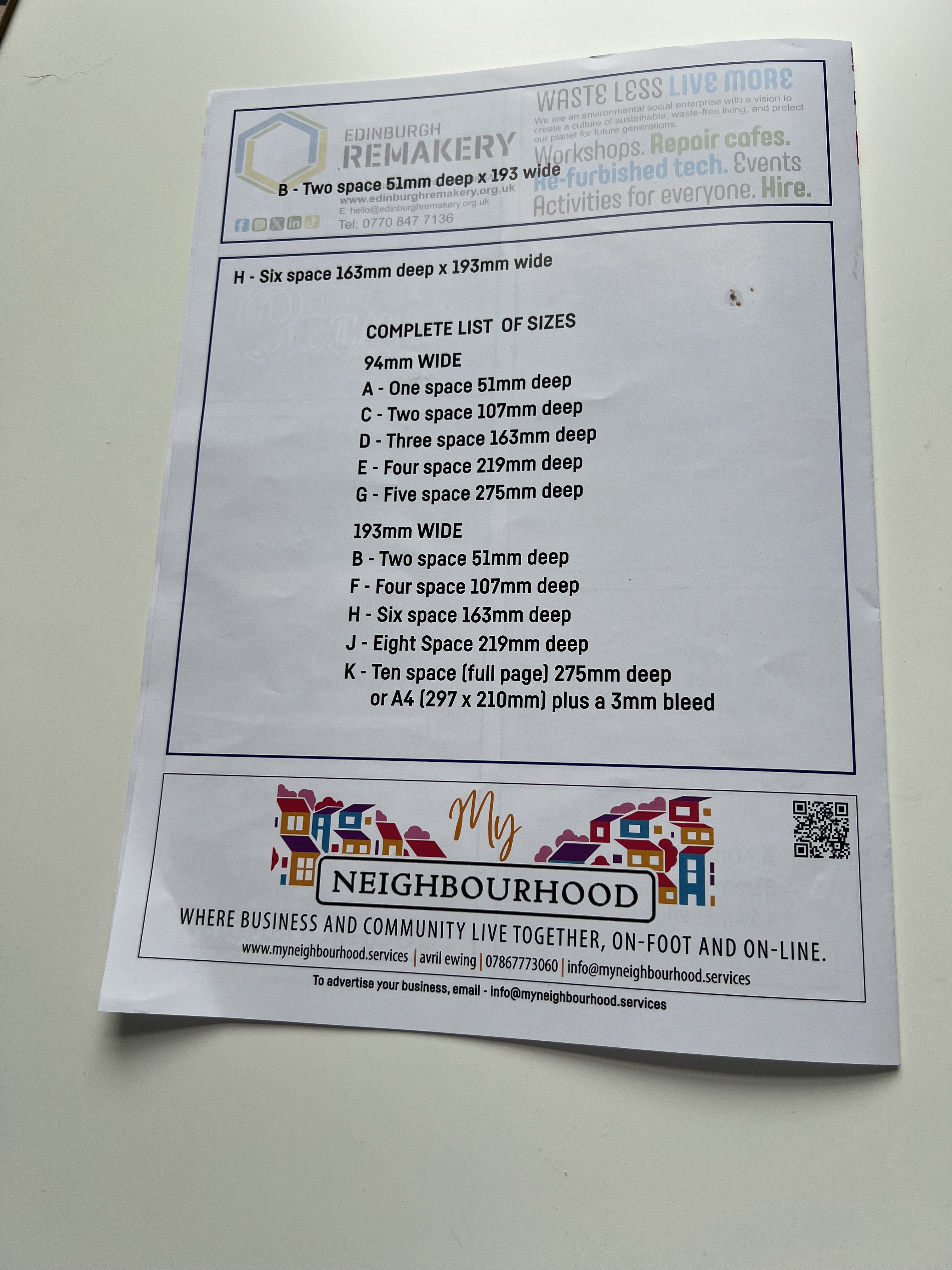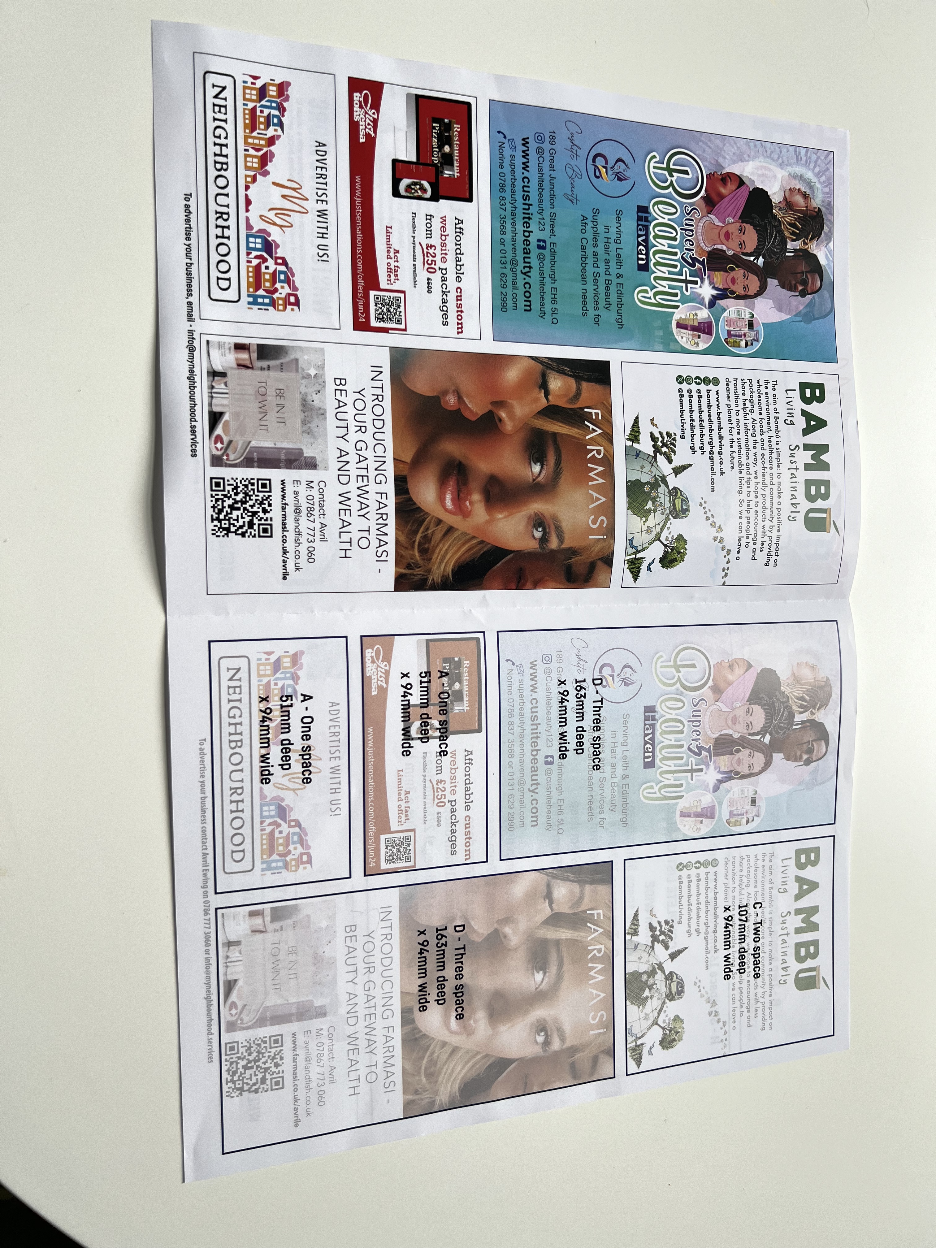 My Neighbourhood only publish advertisements of good quality and design. That is why we recommend advertisers use either our Graphic Design Services or other professional graphic design services. We will provide artwork specifications for advertisers supplying their own print ready artwork.